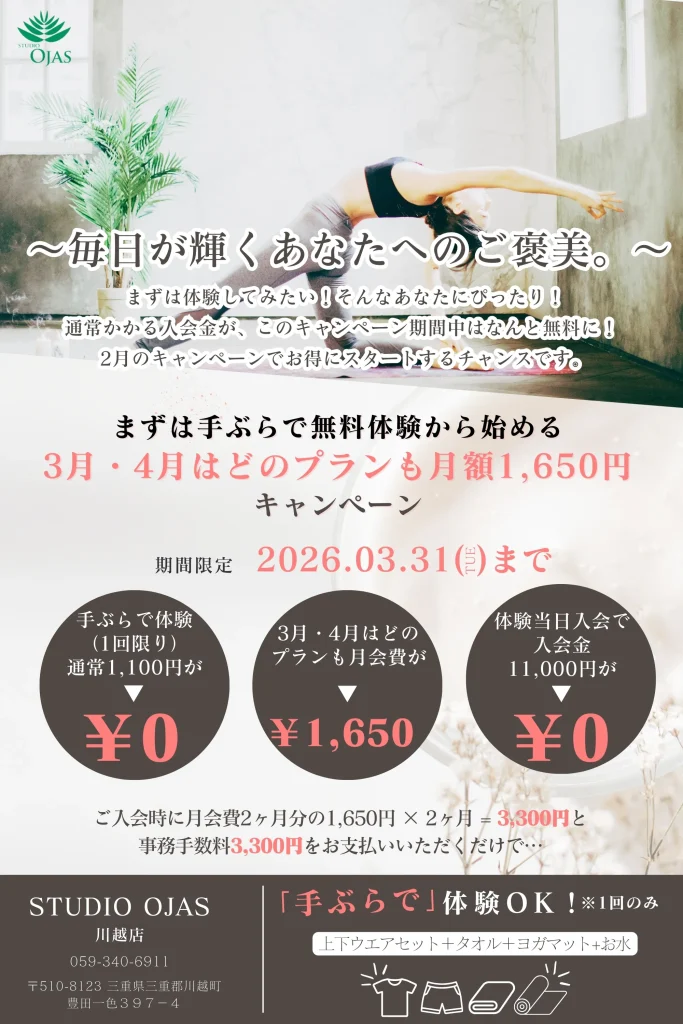 「桑名と四日市で最高のホットヨガ体験を。」女性専用のホットヨガスタジオSTUDIO OJAS